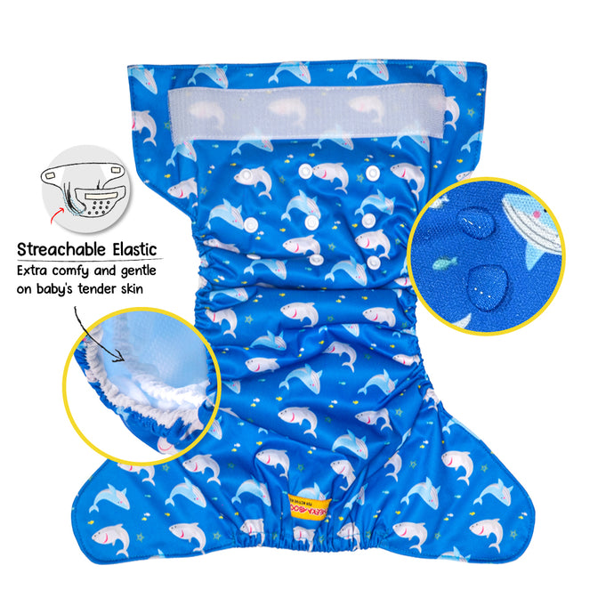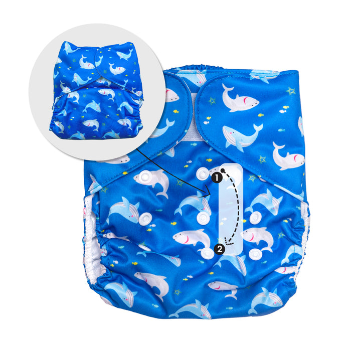 Introducing our revolutionary one-size-fits-all diaper. This versatile diaper serves a dual purpose as both cloth and swim diaper, featuring adjustable snaps and hoop & loop fastener for ultimate comfort, is a top choice among parents.