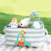 Comes with waterproof cotton inner lining. Ideal for storing toys and books while also serving as a travel accessory.