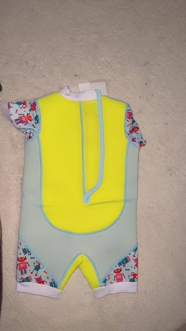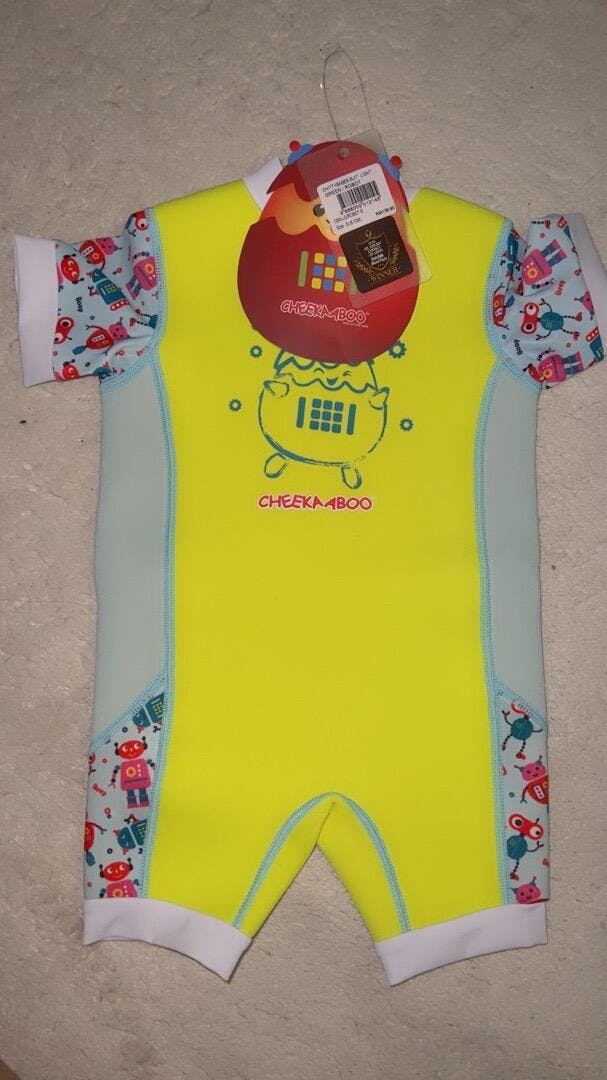 Chittybabes Green Robot one piece swimsuit is all need to make your baby beach-ready in style! It features an adjustable hoop and loop fastener closure at the back to fit snugly. This perfectly prevents excessive water from entering the suit. Furthermore, this thermal swimsuit is available in various sizes for babies ages 6-30 months. Buy now and make a splash in the water!