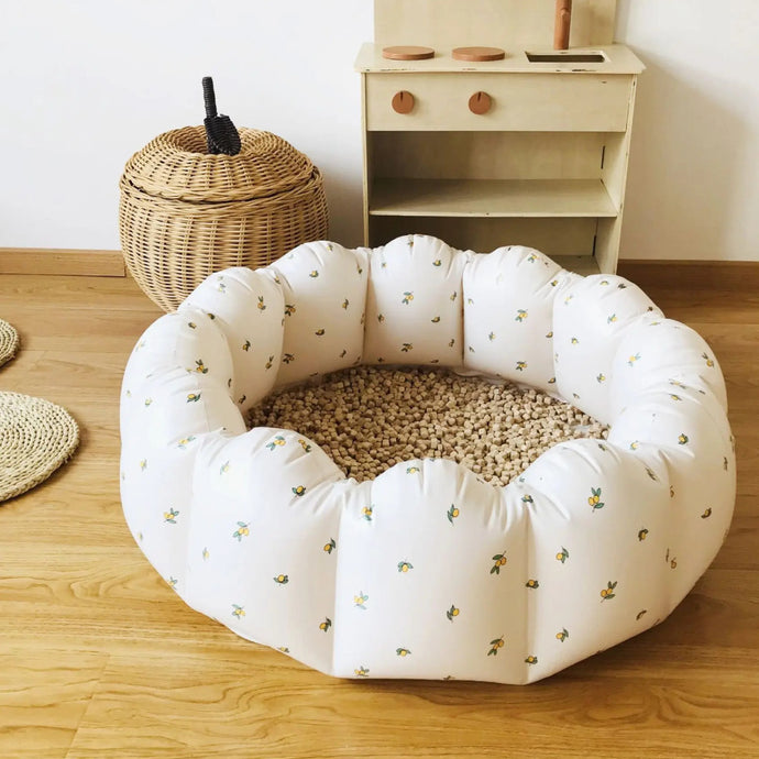 A unique round and flower design give a premium feel. Durably constructed with puncture-resistant materials, this pool features an easy-to-inflate and is built to last. It can also be transformed into a ball or sand play pit!