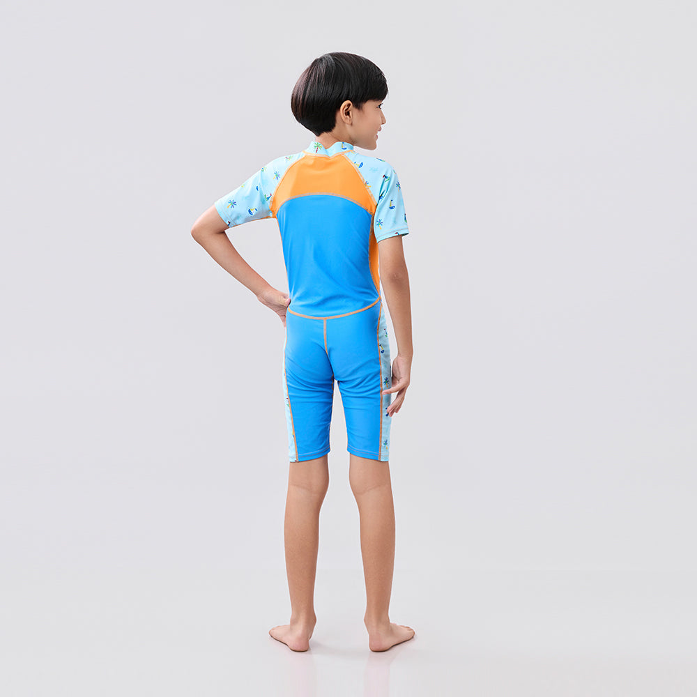 [Online Exclusive]AquaLite Swimsuit 1-Piece UPF50+ Blue Palm Tree