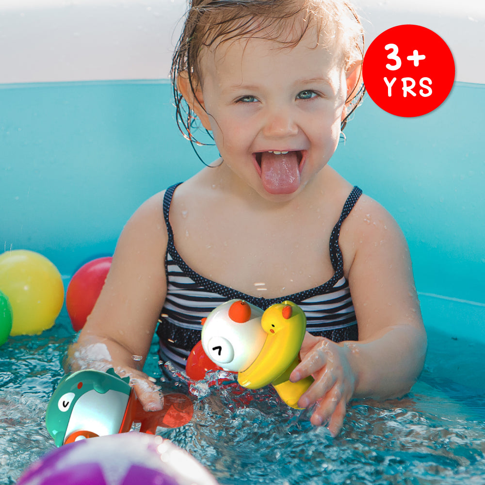 A lively and laughter-filled activity where kids splash and spray each other with colorful water pistols, perfect for the bathroom or backyard, bringing smiles and excitement, especially on a hot day.