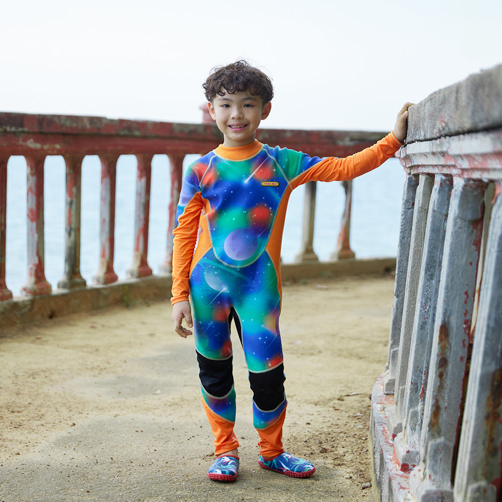Discover the comfort, safety, and style with our specialized kids' sunsafe suit. This suit designed to prioritize safety and fun, caters to adventurous young swimmer.