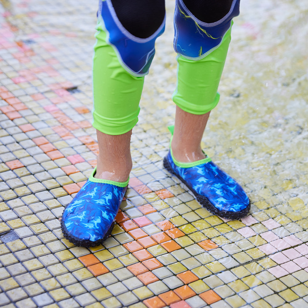 Ideal water shoes for pool activities let your toddler explore the water with comfort and style. Cheekaaboo's Toddler's Aqua Shoes provide exactly that. Their lightweight design makes them perfect for playing not just at the pool but also at the beach or outdoors. This pair of Blue Dino Aqua Shoes features a cheerful blue fish design suitable for toddlers aged 2-8.
