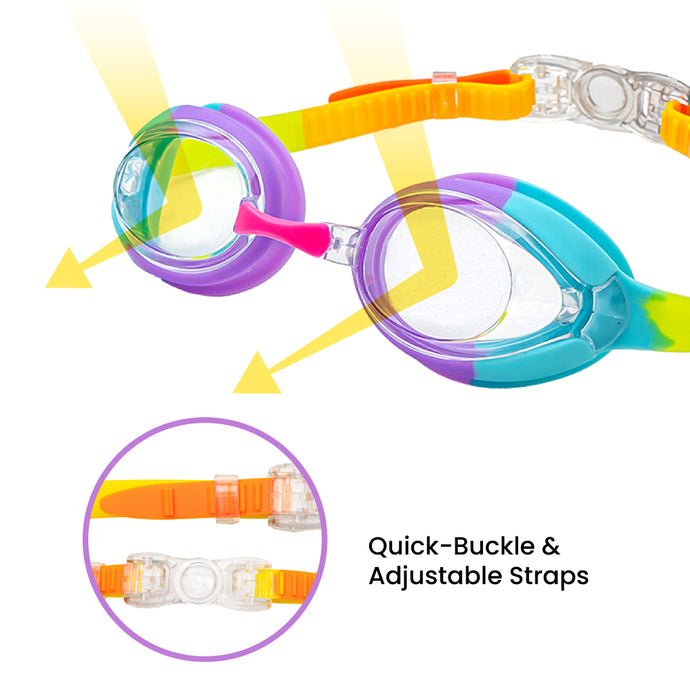 Swim Goggles with Adjustable Silicone Strap - Rainbow (3 - 14 years)