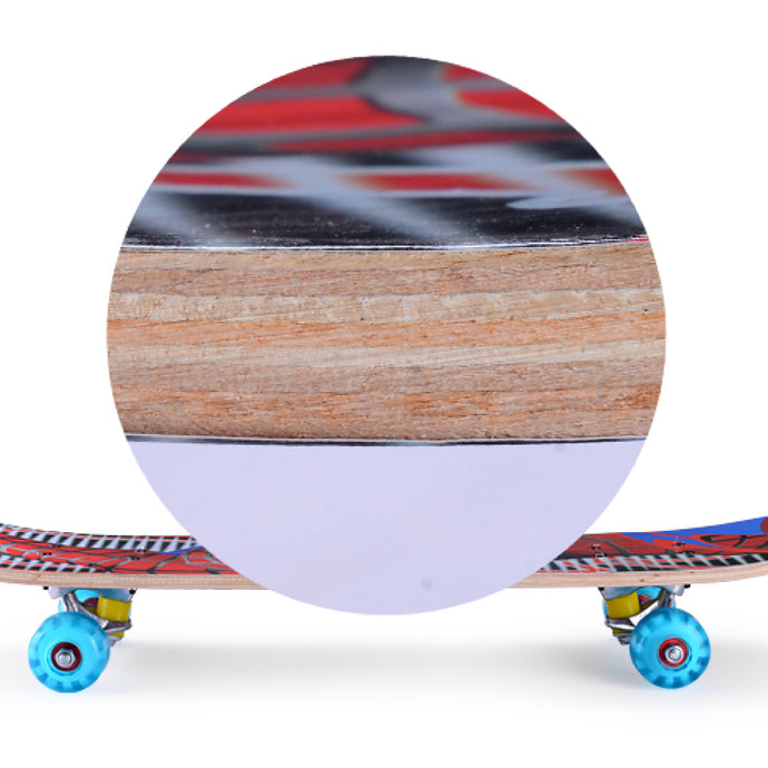 Roll into fun with our Kids Skateboard. Sturdy and lightweight, it features PU flashing wheels for added visibility in the dark and shock-absorbing rings for a smooth ride on any surface. Perfect for 4-12 years old little skater!