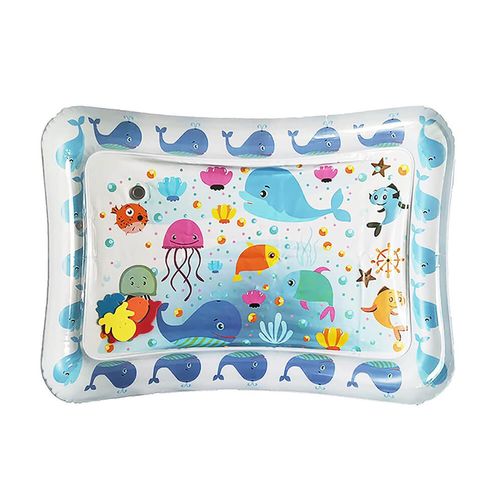Bring the ocean to your home with our inflatable water play mat for babies! Complete with vibrant sea world creatures, your toddler will have a blast exploring the exciting and colorful adventure. Perfect for babies aged 3-12 months. Let the fun be