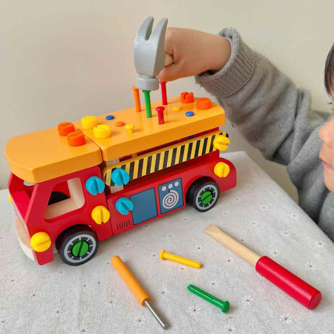 This nut truck toy offers hands-on disassembly and assembly fun. Kids use wooden tools to take apart and rebuild the truck, improving fine motor skills, cognitive ability, and creativity. Multicolour design makes the learning engaging for preschoolers.
