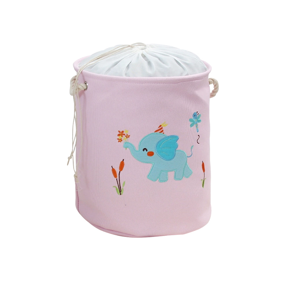 Fabric Organization Storage Bag - Pink Elephant (Round)
