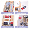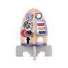 A multi-sided activity cube with space / rocket theme, packed with sensory features like shape sorting, bead mazes, and spinning elements to engage toddlers and build motor skills.