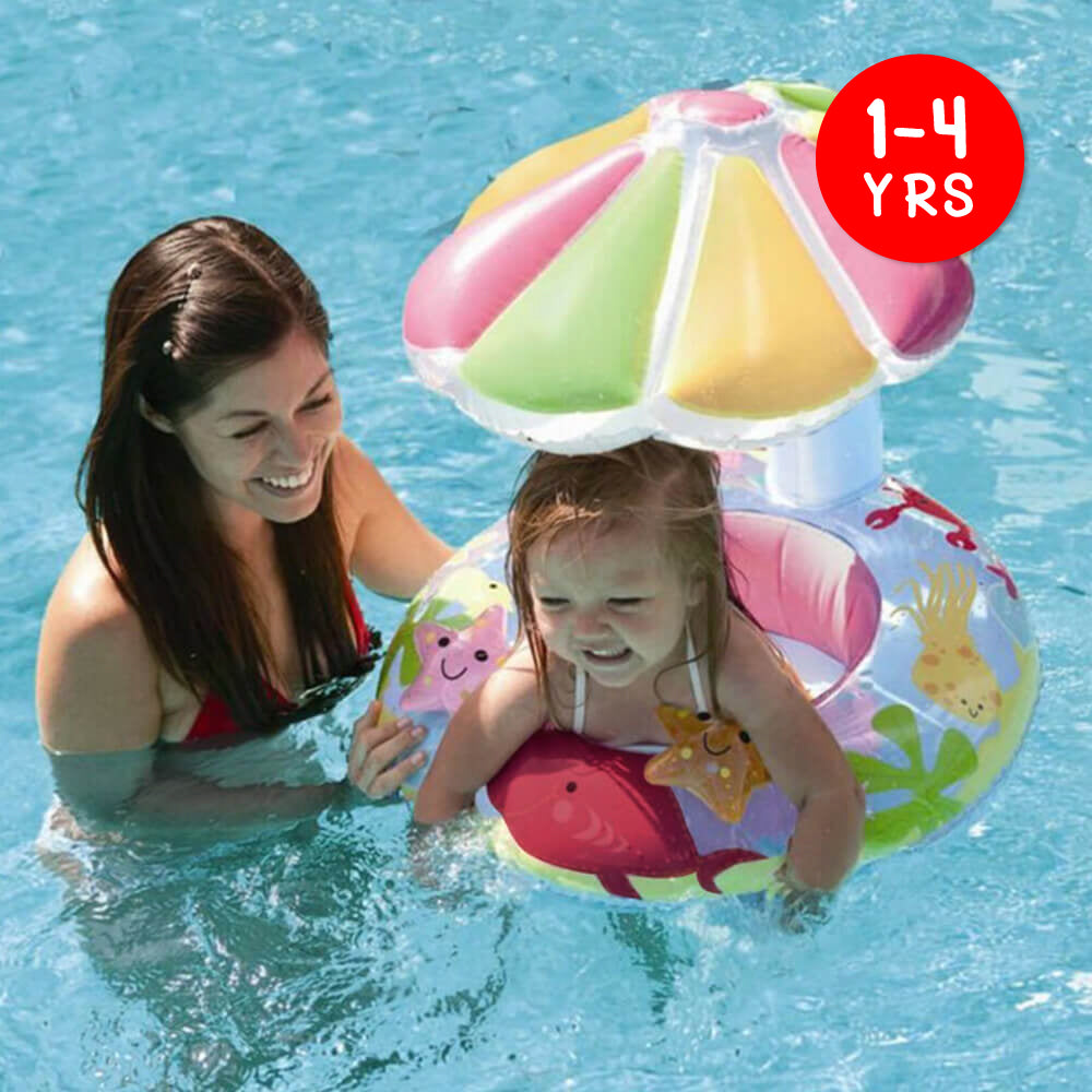 Let your baby splash around in style with this adorable baby swim float with sunshade! Get your little one ready for a day full of summertime fun, safe in the knowledge that they won't get too much sun with the included sunshade. Perfect for kiddos aged 1-4.