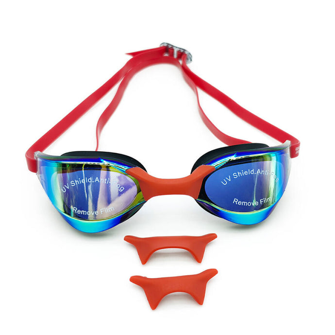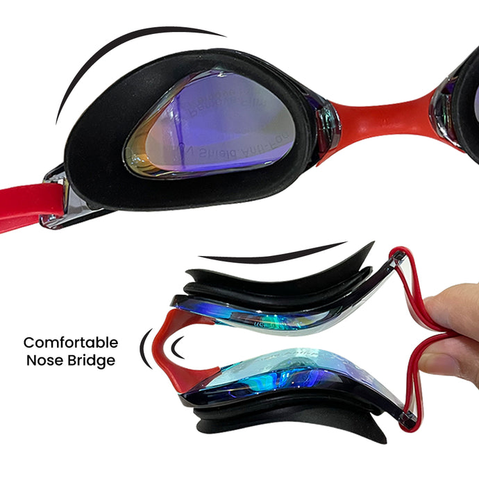 Get ready to race! These lightweight swim goggles are designed for clear vision and speed. They offer 2x anti-fog, UV protection & mirrored lens, and a flexible nose bridge in 3 sizes. The low-profile frame reduces drag, while the split strap ensures zero slippage. Perfect for recreation, training, or competitionβunisex fit, travel-friendly, and built for all swimmers.