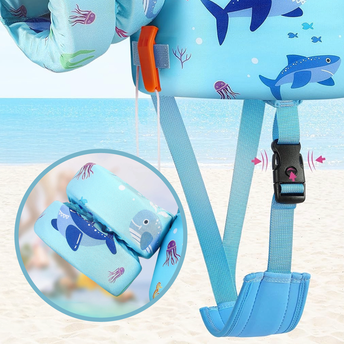 Kids Adjustable Swim Vest with Buckles - Blue Shark