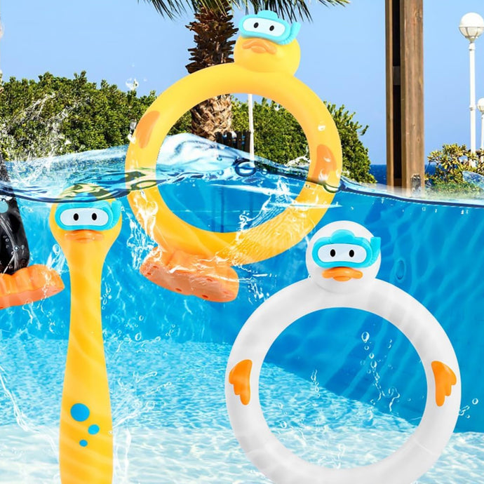 The Dive Game is a fun and exciting way to improve swimming skills! The basic idea is to dive underwater to catch the ducks. But the fun doesn't stop there! Get creative and invent your own games. You can race your friends, see who can catch the most ducks, or even use the ducks for underwater tag!