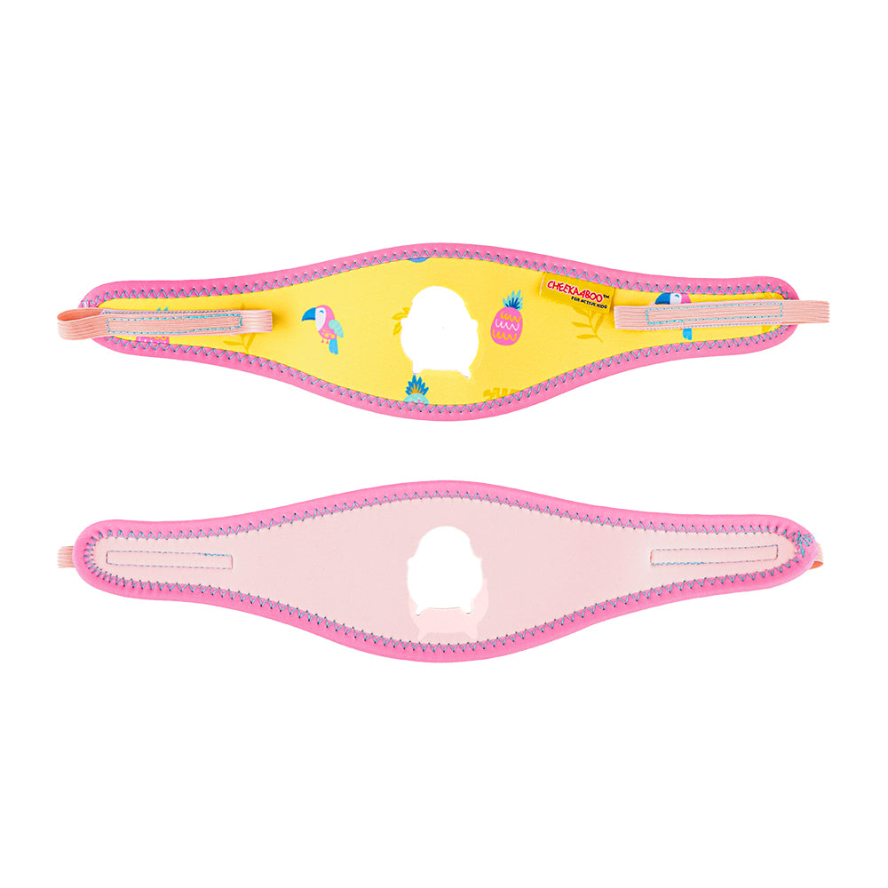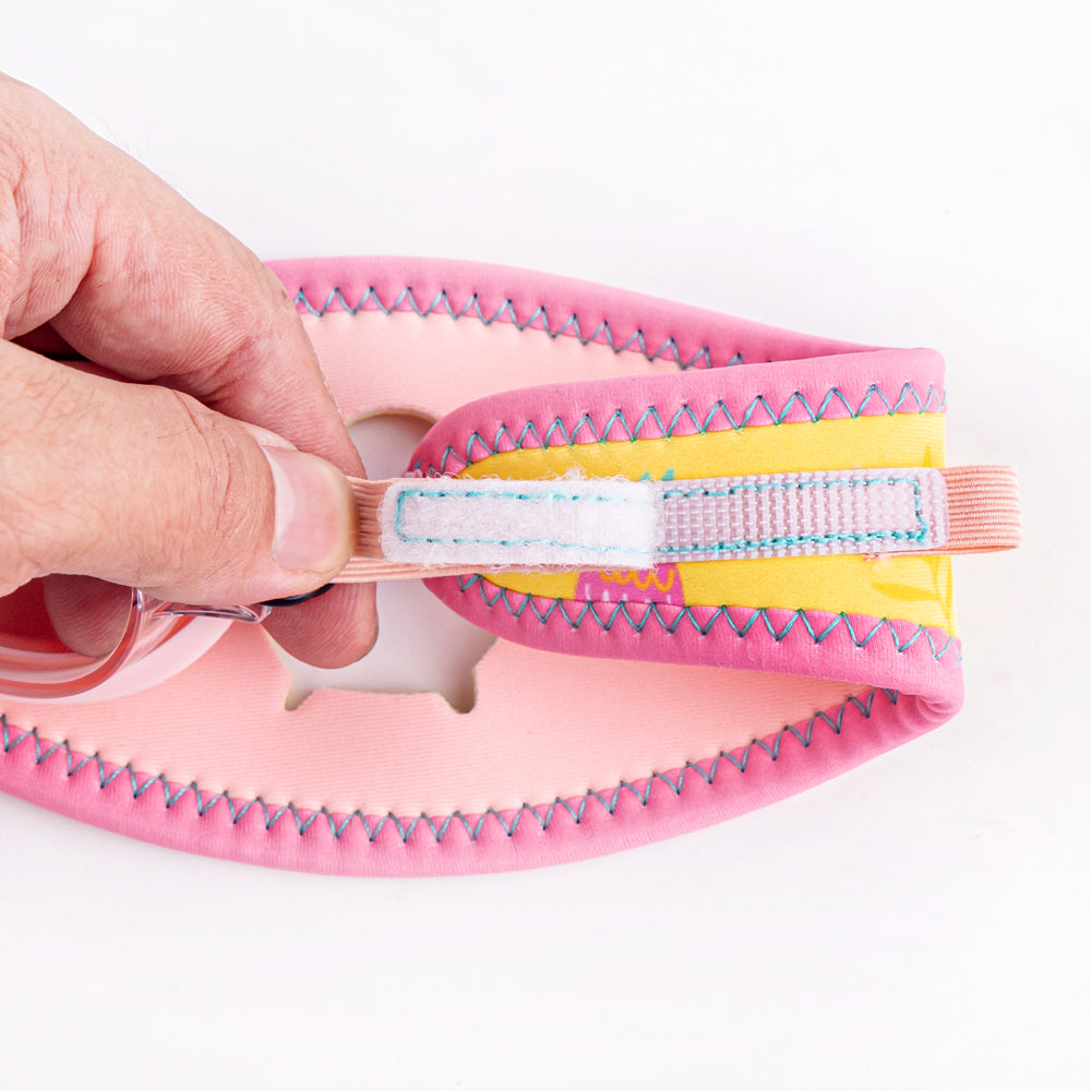 Adjust the straps to fit your child's face. Position your child's goggles' nose bridge to minimise gaps. Make sure the lenses cover their eyes comfortably. Pull the stretchable straps at their heads and tighten them evenly on both sides for a snug but not too tight fit. Adjust for a snug and secure fit as your child grows.