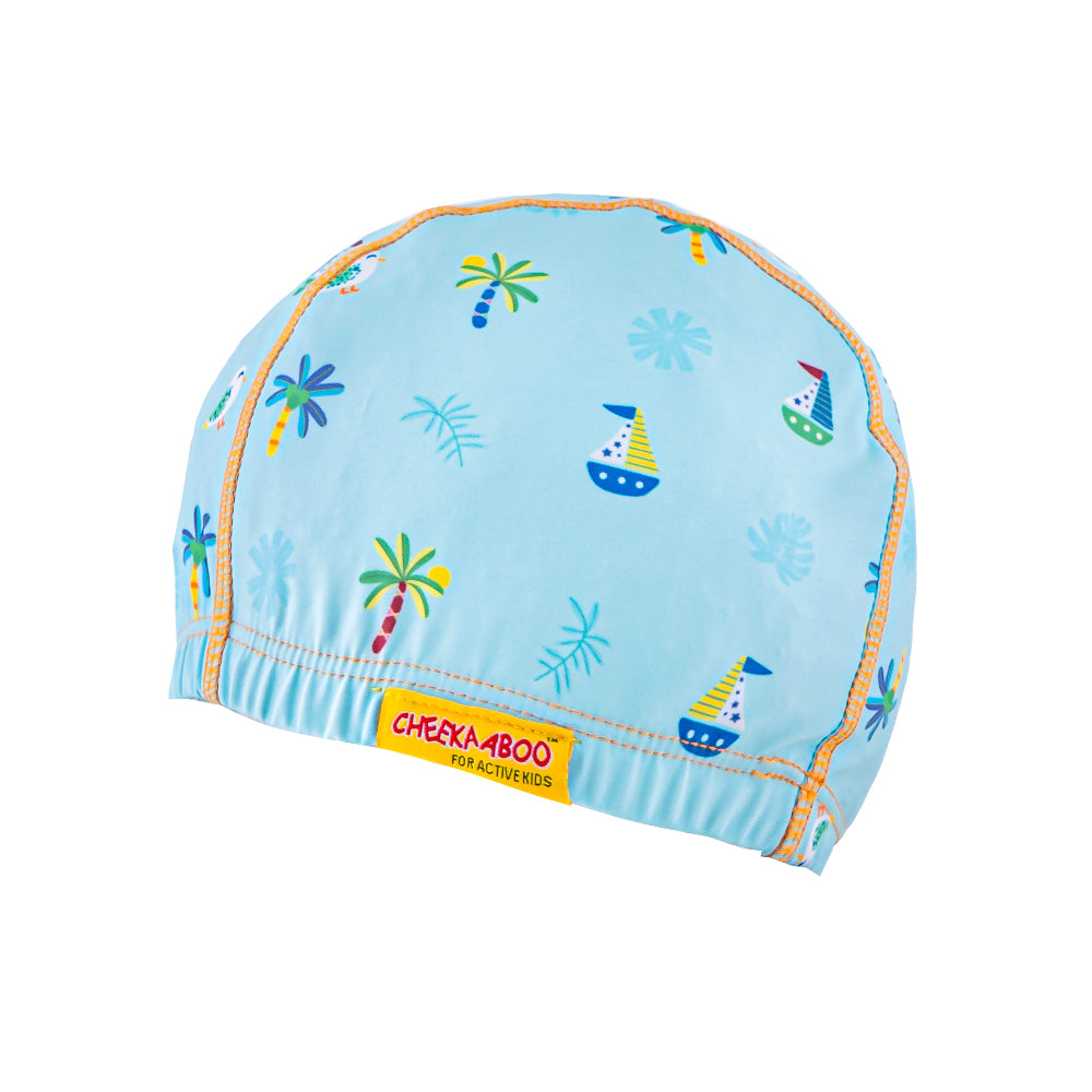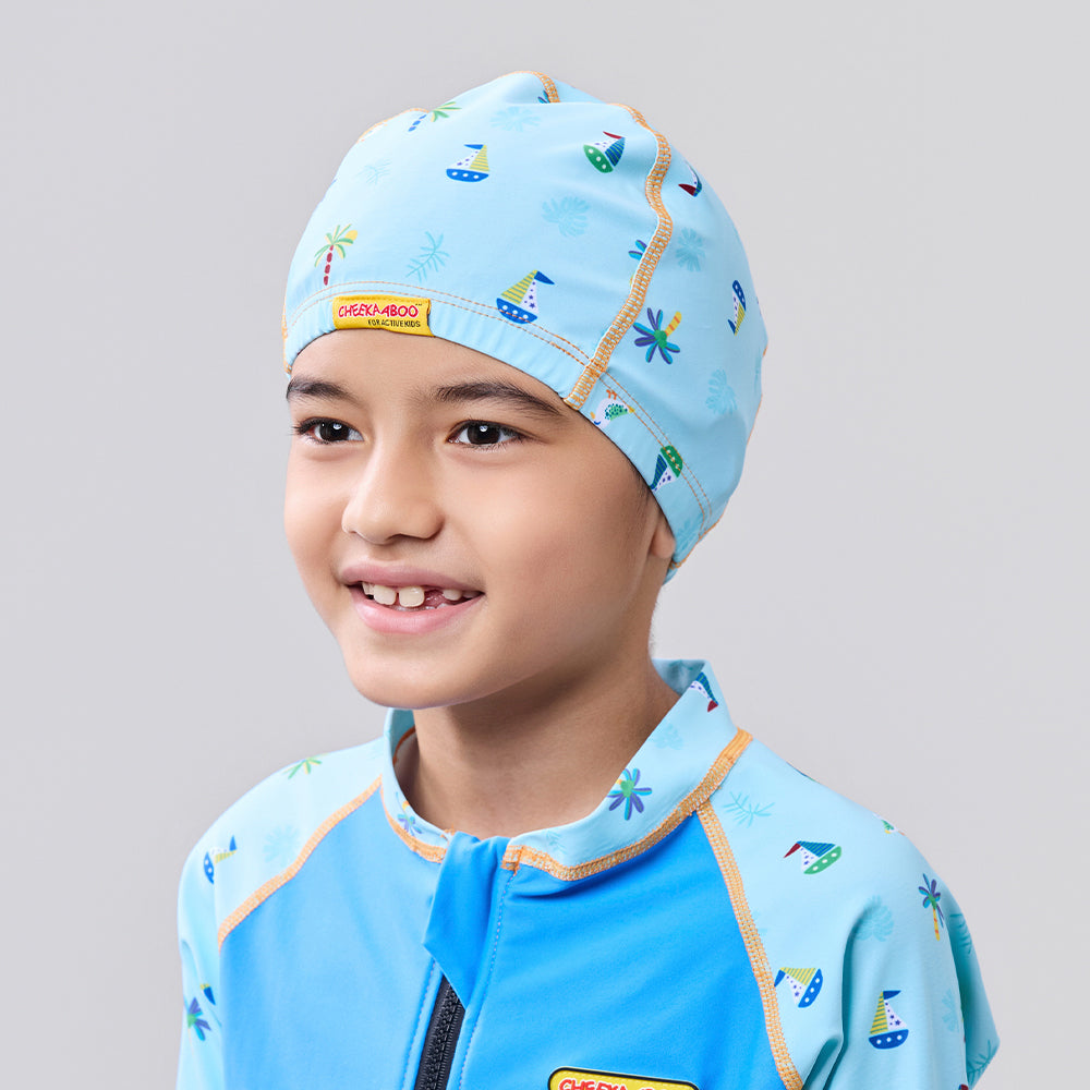 [Online Exclusive]Protective Toddler Swim Cap Blue Palm Tree