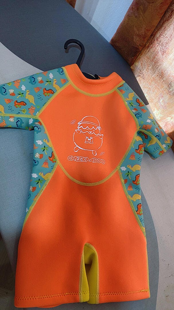 Cheekaaboo's dinosaur swimsuit makes a perfect gift for your dinosaur-obsessed kids. Besides, its fun designs and bright orange color, it is good at keeping your kiddie warm and comfy during water adventures. Kiddies Thermal Swimsuit uses Neoprene as its material. The soft Neoprene offers maximum warmth and protection against the chill.