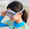 The kids' wide-frame goggles offer a broader field of vision, providing enhanced visibility during swimming.