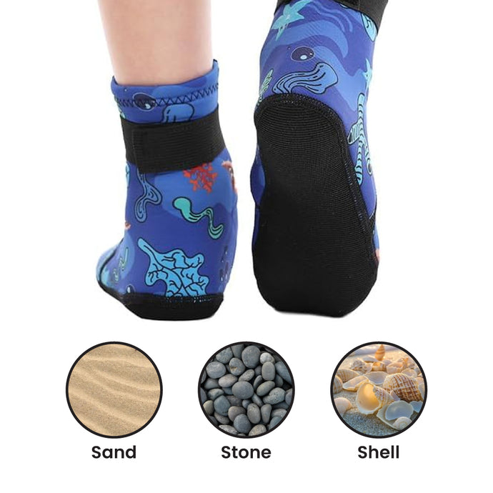 Level up beach fun! These beach socks shield your little one's feet from hot sand, sun rays, and provide warmth in cooler water. Perfect for 3-7 year old's, they're soft, lightweight, and flexible, ensuring your little explorer stays comfy all day long!