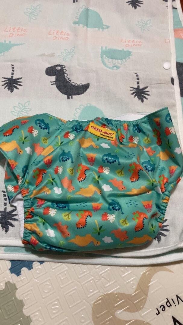 This dinosaur-themed washable diaper comes with an absorbent cloth insert and a waterproof outer layer. You can remove the insert and use the waterproof layer to swim. Plus, the thoughtfully designed front flap lets parents easily put it on and take it off. It is also easily adjustable with button snaps, ensuring a secure fit for growing babies aged 6 to 36 months.