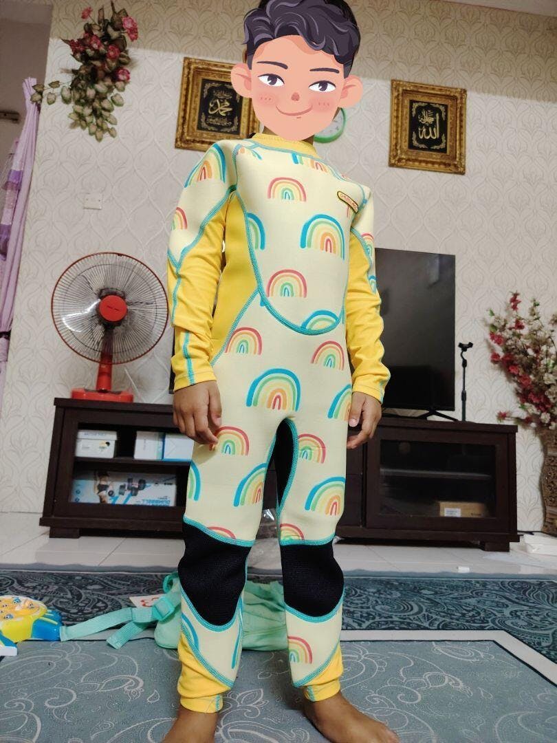 It is recommended to wear it snugly fit (fitting) to minimize the inflow and outflow of water, thus creating a layer of insulation from cold between the suits and kids' skin.