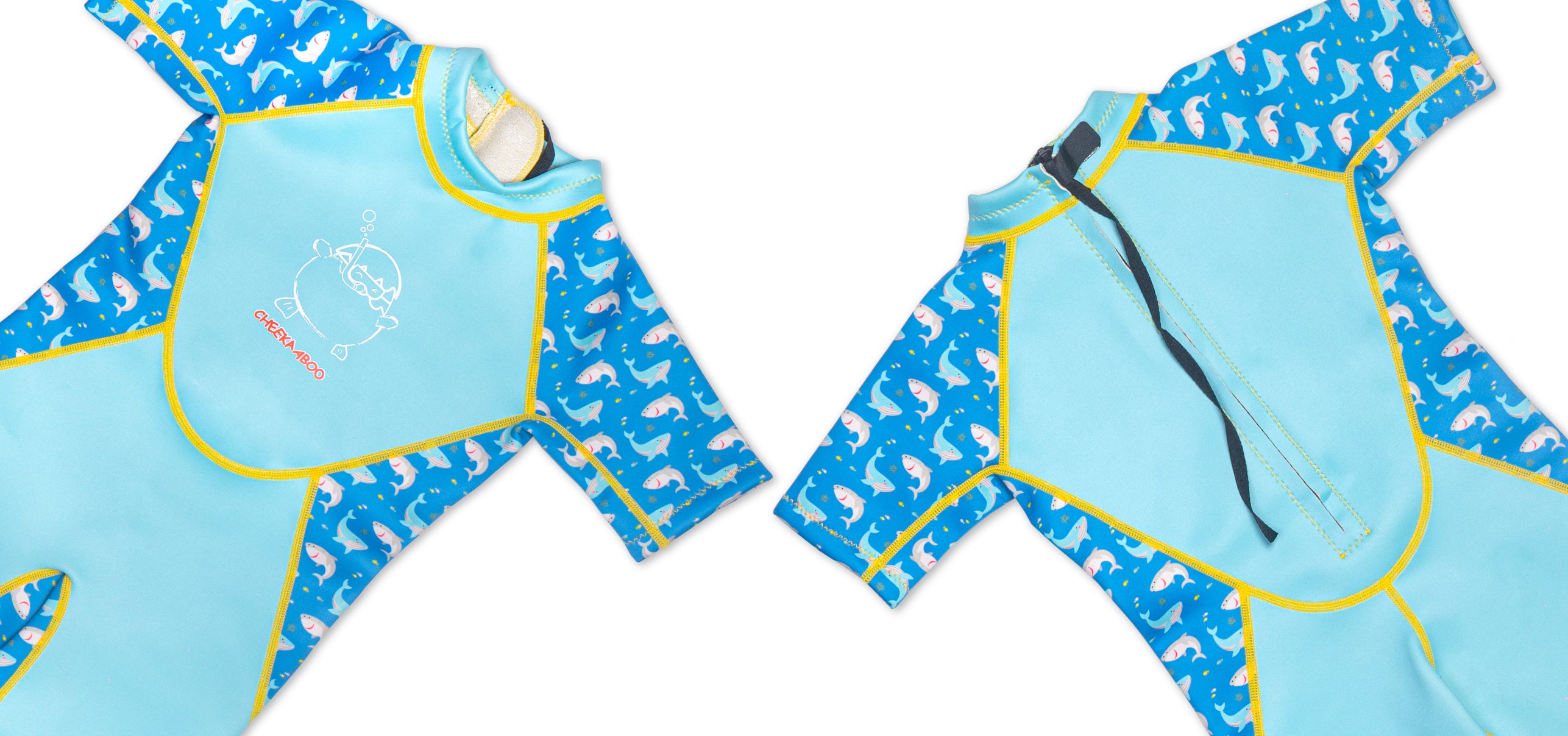 Cheekaaboo thermal swimsuits are designed to fit snugly, which prevents excessive water from entering the suit. Improve insulation by choosing a snug fit that retains a warm water layer in proximity to the child's body.