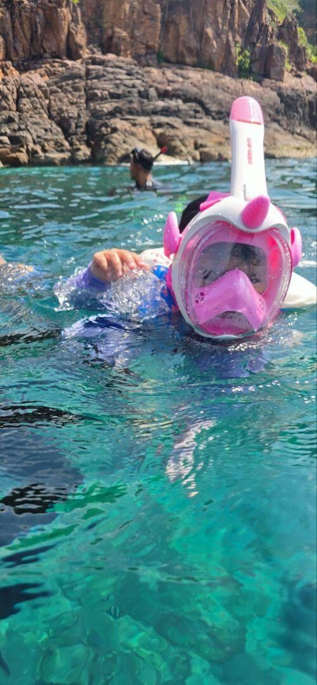 Cheekaaboo’s Full Face Diving Mask is to provide kids with a safe and comfortable underwater experience. Featuring a 180° panoramic view with a flat lens, it ensures a clear vision for an immersive underwater adventure. Additionally, the soft silicone face padding offers a snug and secure fit. The full face design allows natural breathing through both the nose and mouth, reducing fatigue and enhancing comfort.