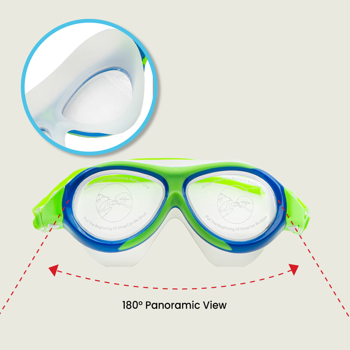 Wide view goggles are the best choice to build your child's comfort and confidence underwater. Cheekaaboo's Silicone Wide Frame Swimming Goggles are here with a fantastic 180-degree vision to make your child's swim adventure safe and enjoyable. Furthermore, these goggles guarantee clarity with two anti-fog layers and one HD clear layer in between.Β