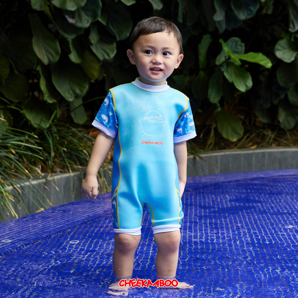 Cheekaaboo's thermal swimsuit also offers UV protection, which is essential for protecting a child's sensitive skin from the harmful effects of the sun when they are in the water for extended periods.