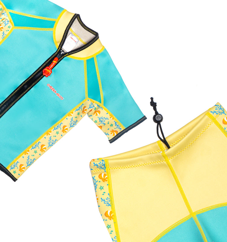 Protection and independence all in one! This thermal swimsuit comes with a jacket, shorts with adjustable fit, and a self-dressing front zipper enabling your little ones effortlessly dressing themselves.