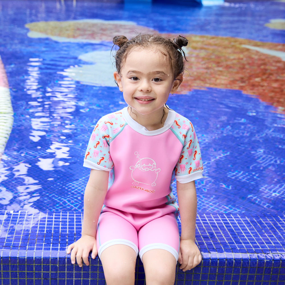 Cheekaaboo's thermal swimsuit also offers UV protection, which is essential for protecting a child's sensitive skin from the harmful effects of the sun when they are in the water for extended periods.