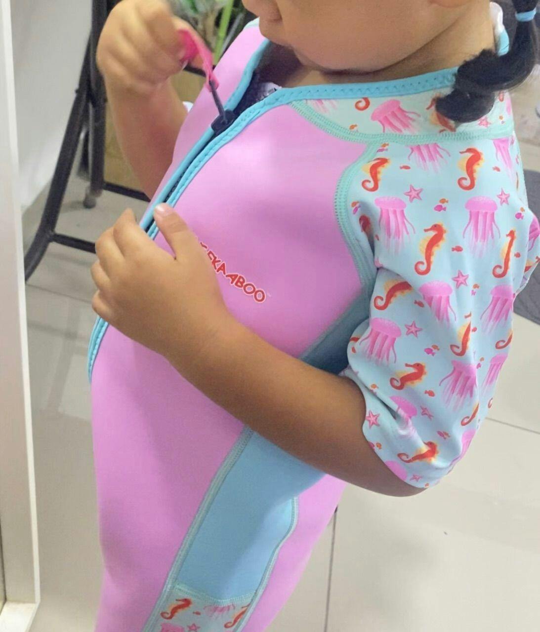 Introducing our zip-up one-piece swimsuit from the Under The Sea Collection! The adorable sea creatures are our design inspiration for this swimsuit. Your kids will feel like a true ocean explorer, embarking on exciting adventures with every wear! Cheekaaboo's Wobbie Toddler Thermal Swimsuit has everything you are looking for in a bathing suit for your child.