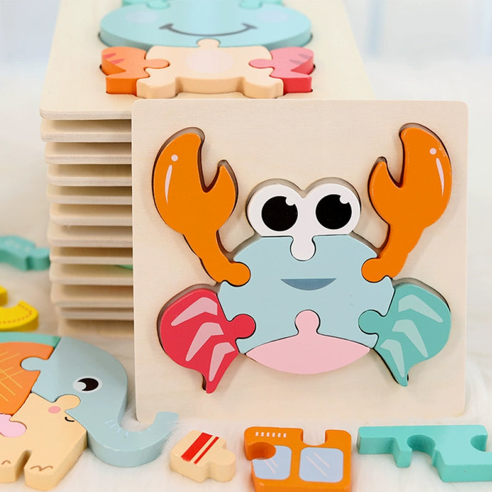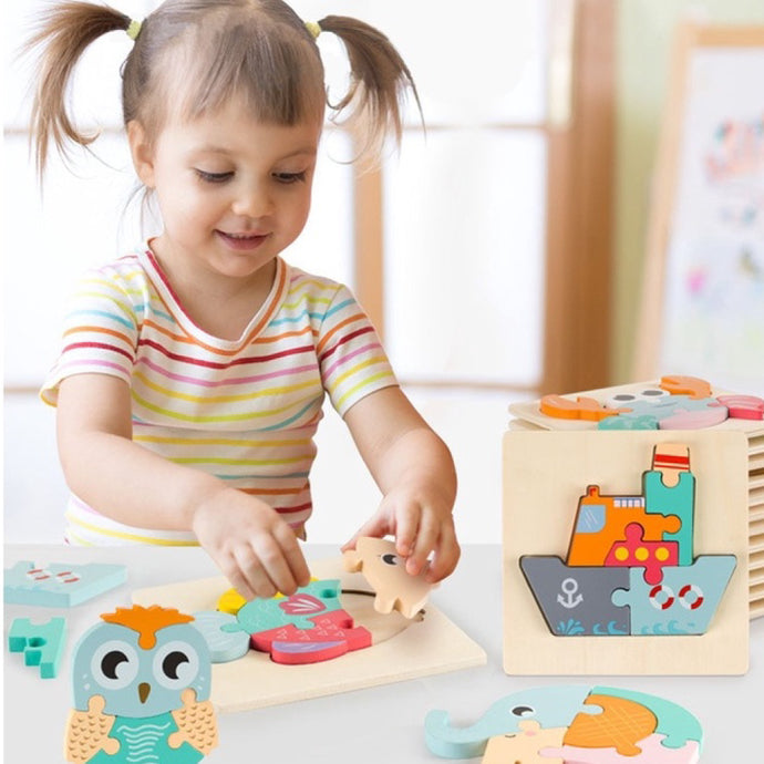 A pastel-coloured 3D wooden block puzzle offering multiple shapes to stack and build. Encourages imaginative play, spatial awareness, and fine motor skills, perfect for toddlers and preschoolers wanting creative play with wooden blocks.